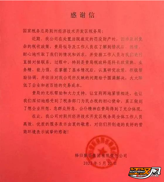 近日,经开区税务局收到一封宜昌市秭归县某企业的感谢信,饱含着对该局优质服务的认可和称赞。今年5月,秭归县人民法院和该企业在处置法院裁定的罚没财产(位于荆州经开区辖区的两套房产)时,涉及到税务事项,于是向经开区税务局寻求帮助。该局第一时间对涉及的税收政策进行讲解,打消了纳税人的顾虑,并帮忙联系辖区不动产部门办理过户手续。