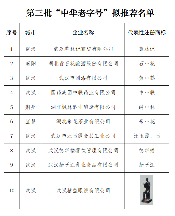 荆州一企业入选湖北省第三批“中华老字号” 2023-06-09 15:33 长江日报 0 6月8日,湖北省商务厅发布《关于第三批“中华老字号” 拟推荐名单的公示》,湖北10家企业拟被推荐为“中华老字号”,其中,荆州的湖北枫林酒业酿造有限公司入选。