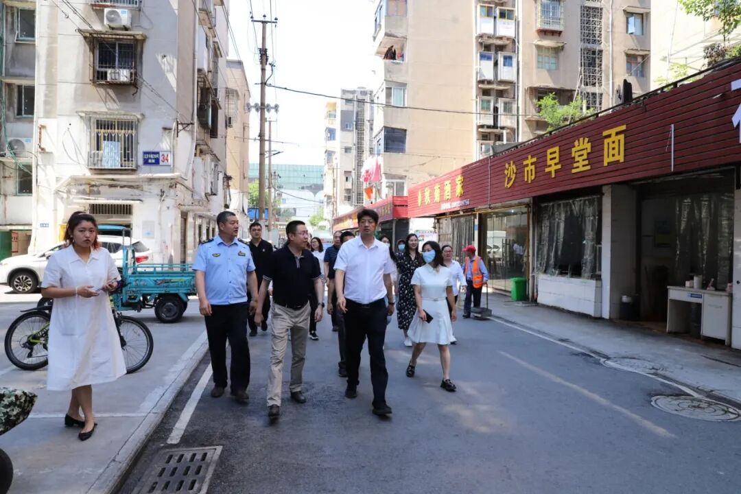 秦军一行先后来到朝阳街道银海菜市场、胜利街道春风通道及新生菜市场、解放街道七一一马路市场、立新街道景明观路、关沮镇杨泗村等地,实地查看市容环境卫生、病媒生物防制、交通秩序管理、重点场所管理、农贸市场规范管理等情况,就相关工作进行安排部署。