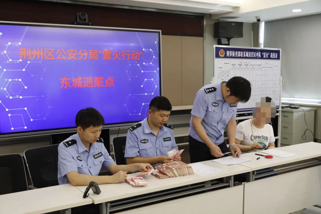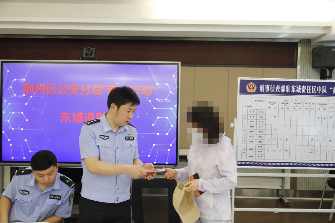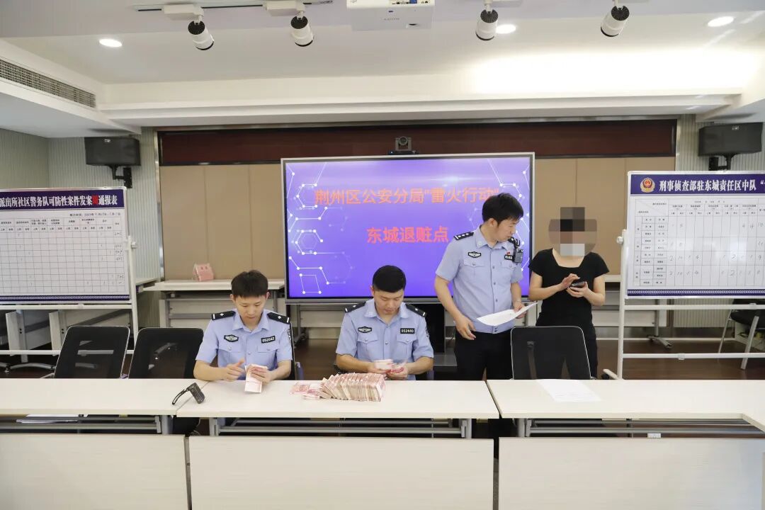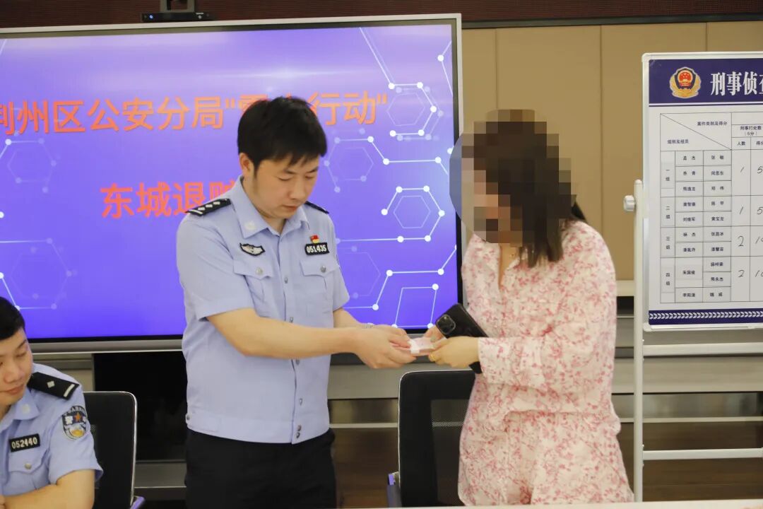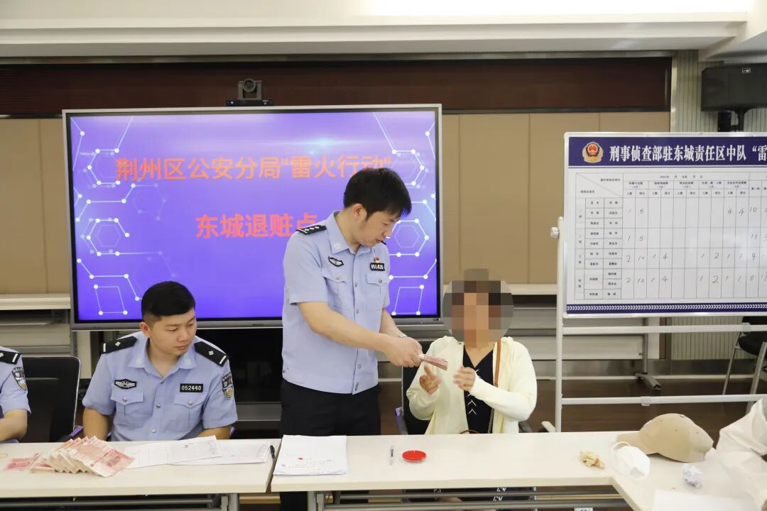 为忠实践行“人民公安为人民”的庄严承诺,展示“雷火行动”专项行动战果,表明公安机关保障人民群众生命财产安全的决心,6月12日下午,荆州区公安分局东城派出所举行退赃仪式,集中为24名群众返还被骗资金17.3万元。