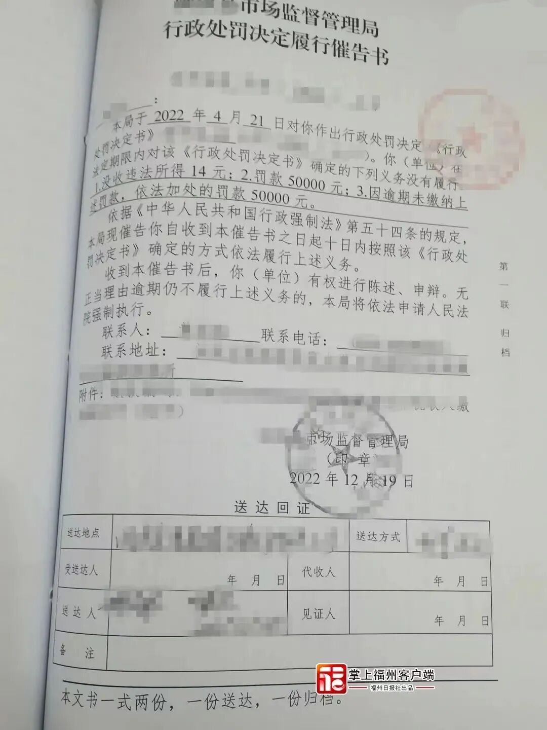 经办法官表示,市场监管部门“处以罚款五万元”的决定处罚畸重。在一审中,闽侯法院裁定对相关行政处罚不准予强制执行。随后,市场监管局提出复议申请,二审法院裁定驳回复议申请,维持原裁定。