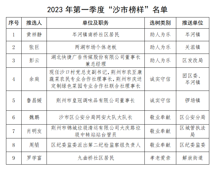“沙市榜样”上榜人物事迹简介
