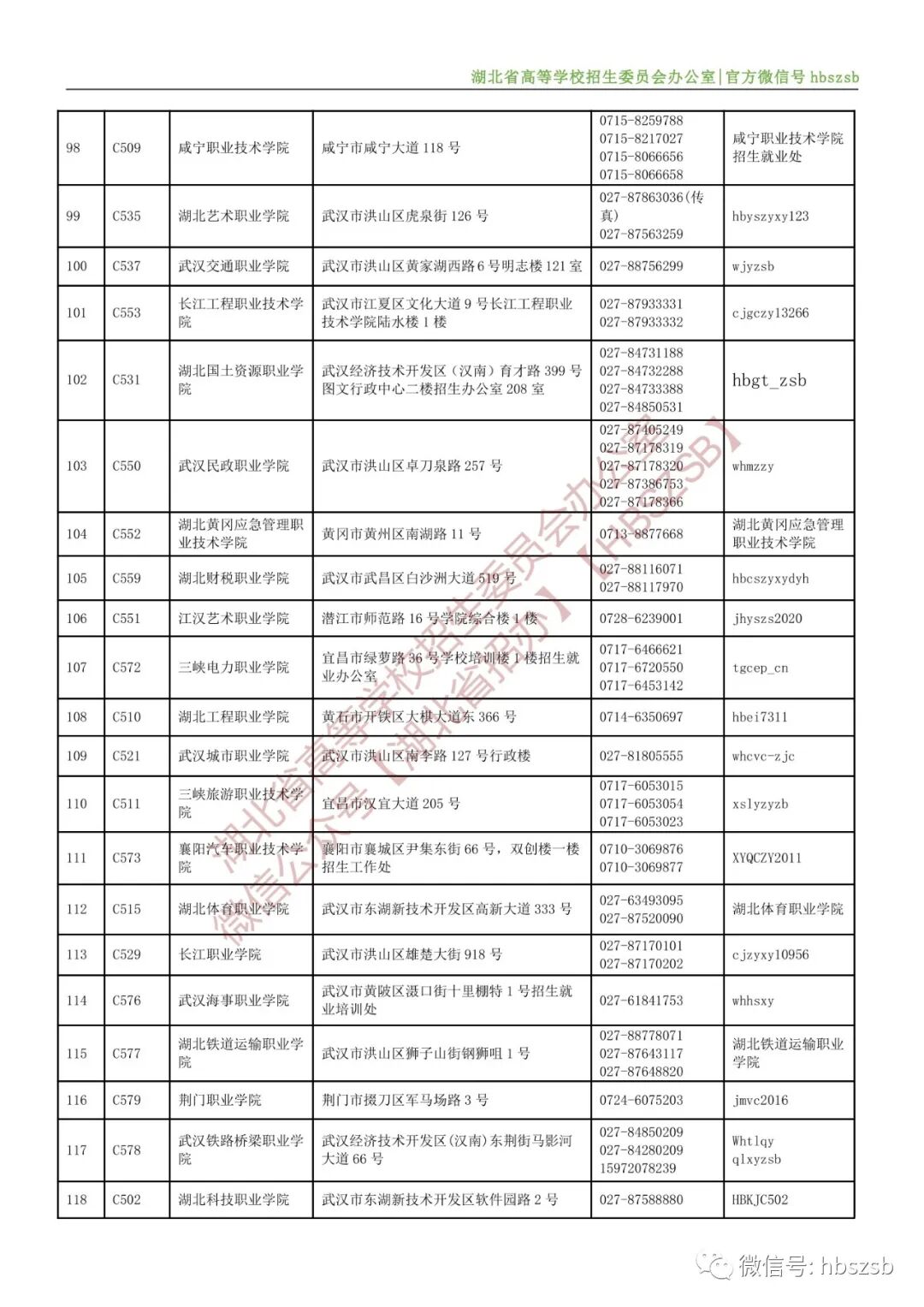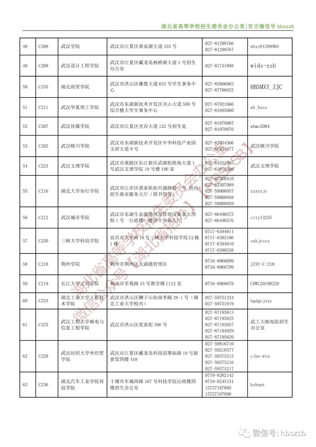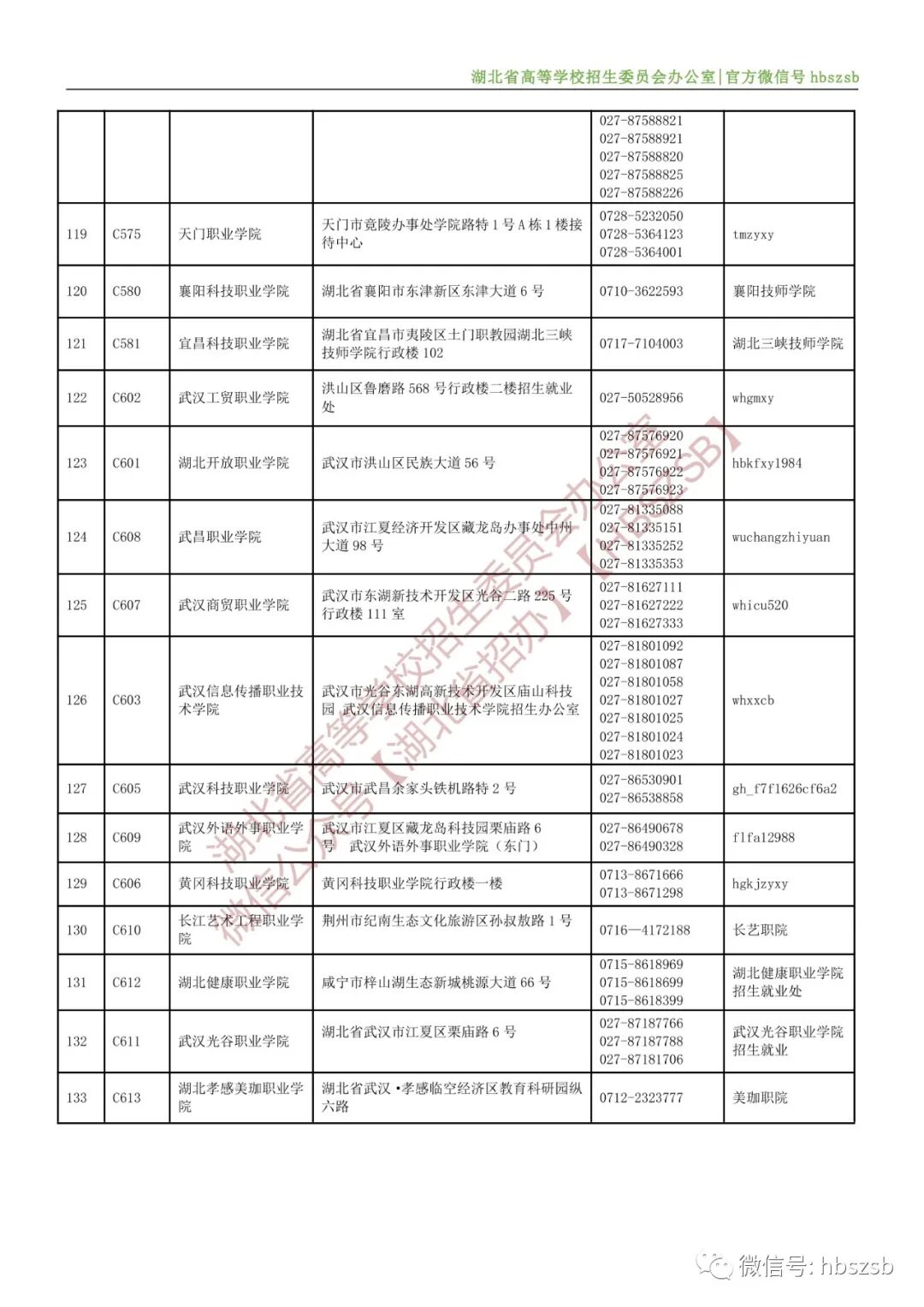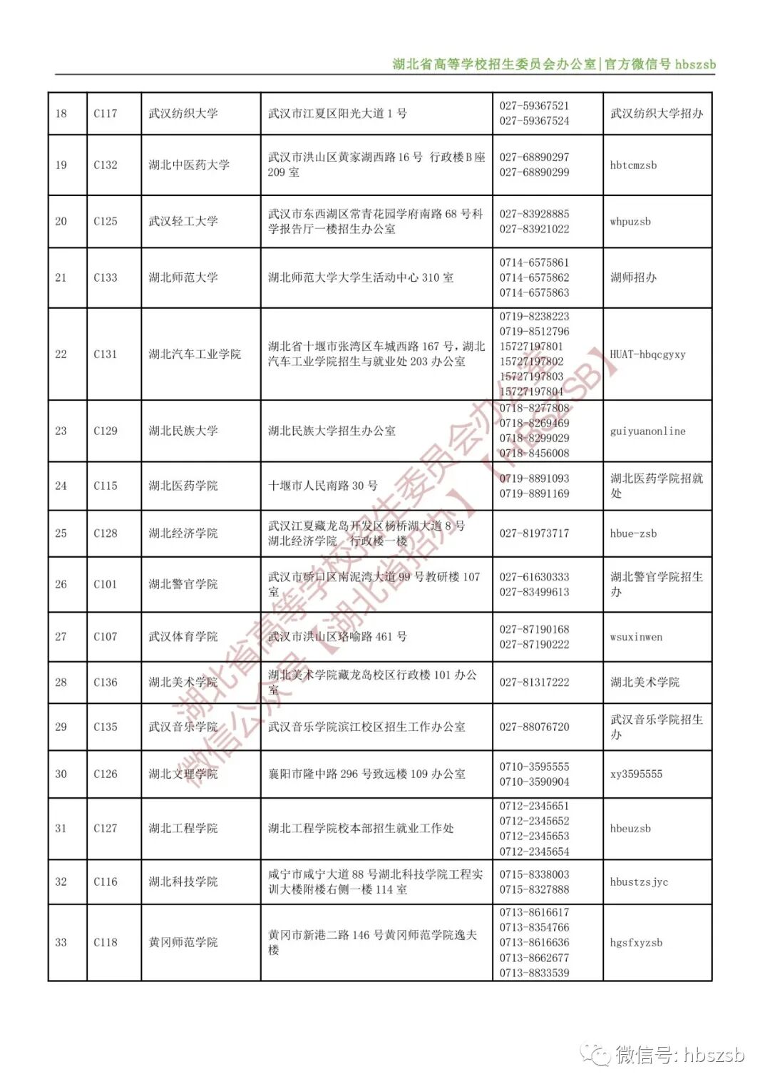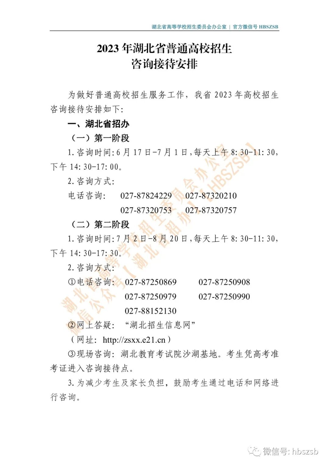 湖北省2023年市(县、区)招办咨询接待联系方式