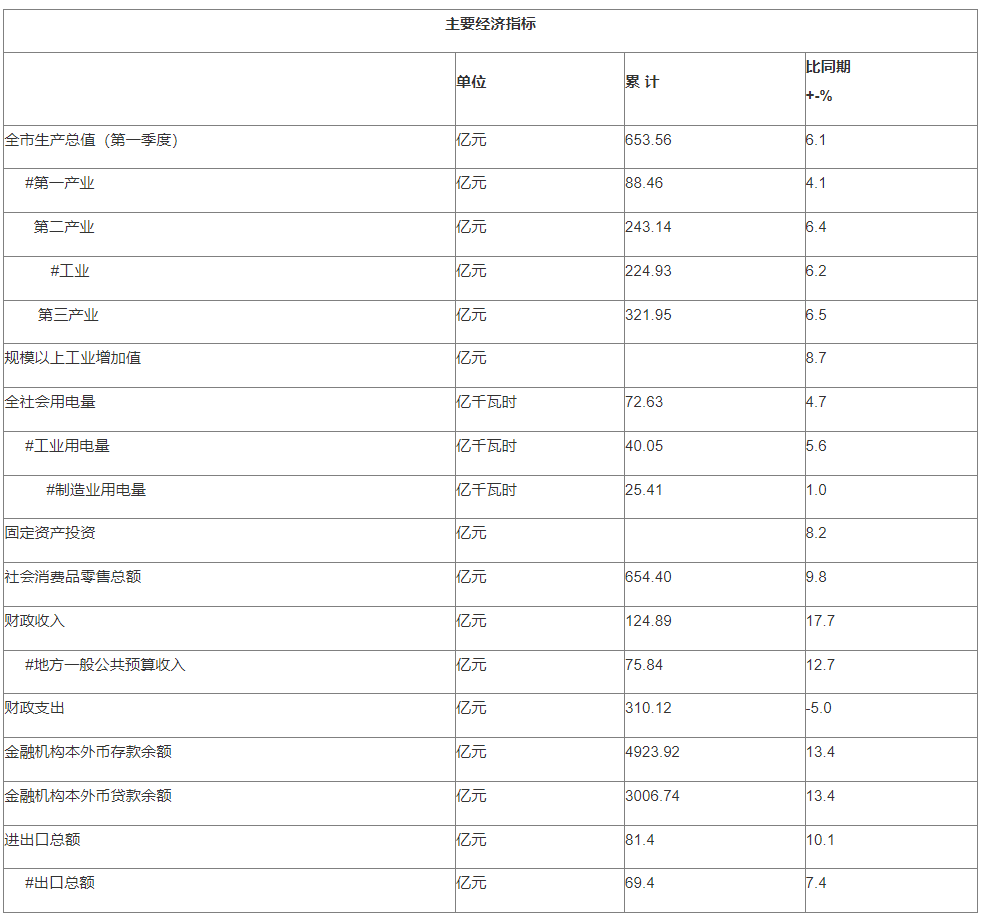 1-5月,全市经济运行呈现稳中向好的发展态势,工业较快增长,投资、消费平稳增长。