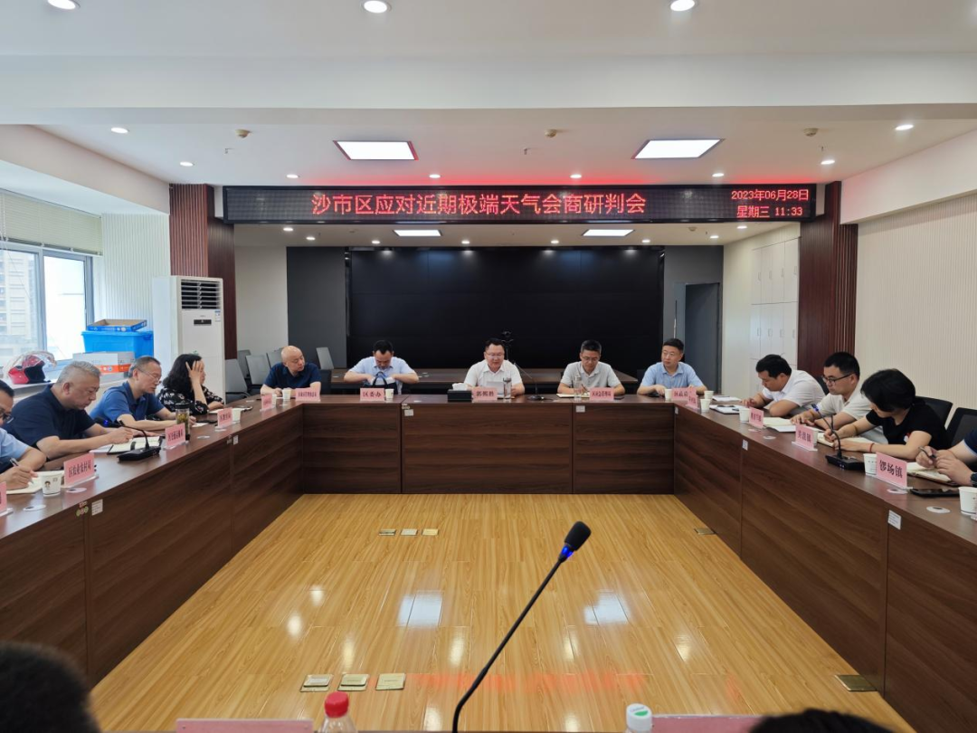 6月28日上午,沙市区召开应对近期极端天气会商研判会,沙市区委副书记、区委政法委书记、区防汛抗旱指挥部常务副指挥长郭熙胜主持会议。