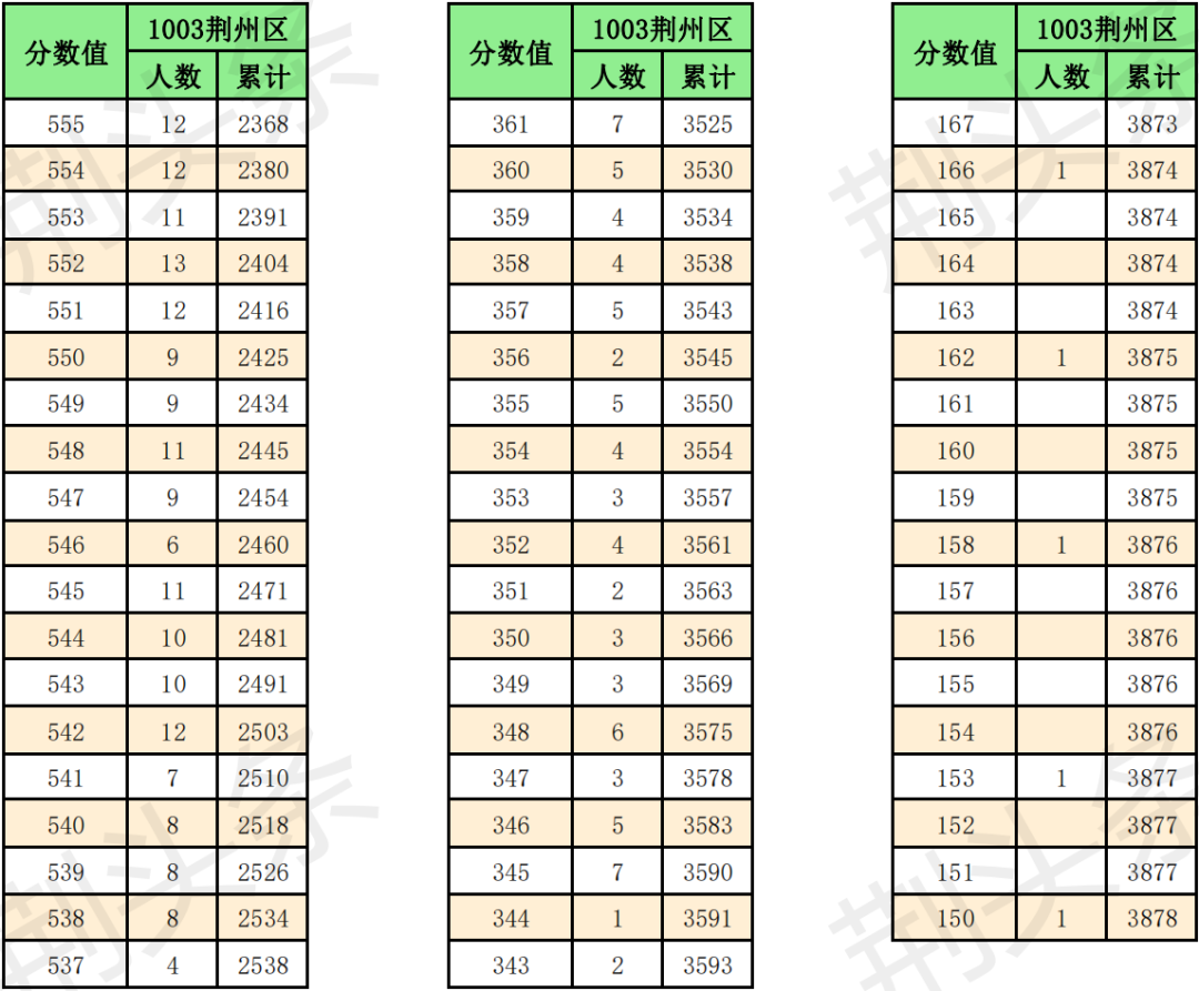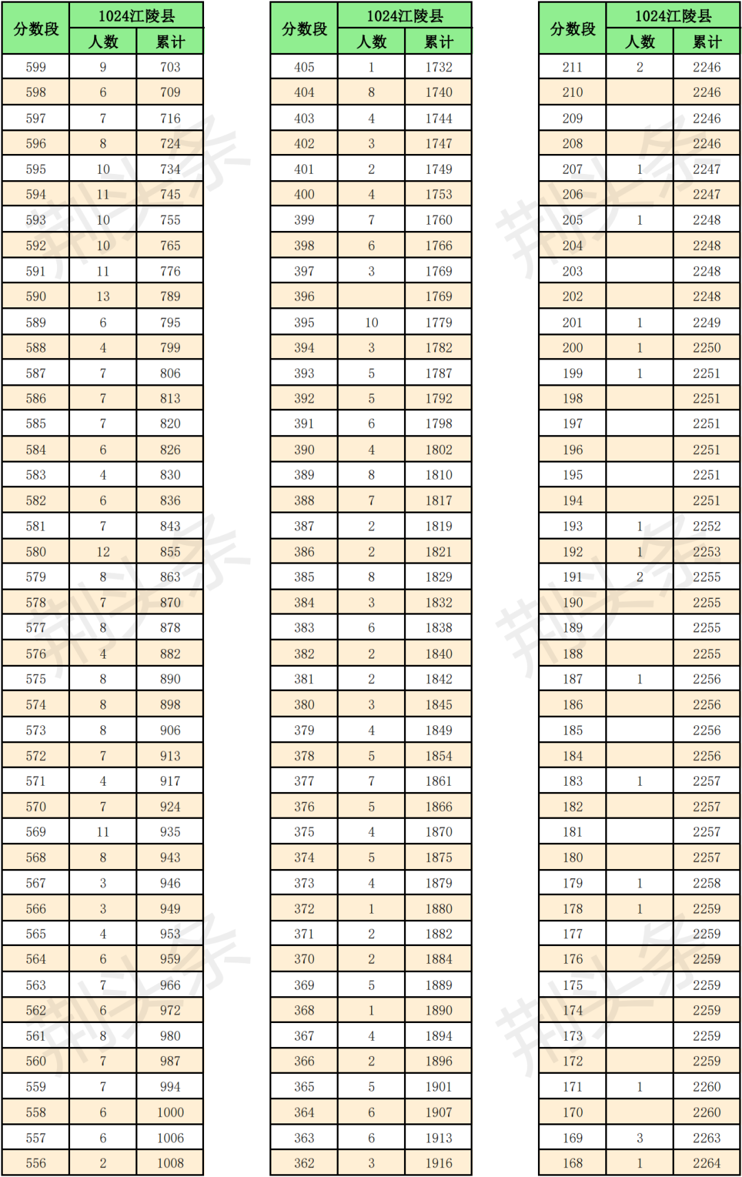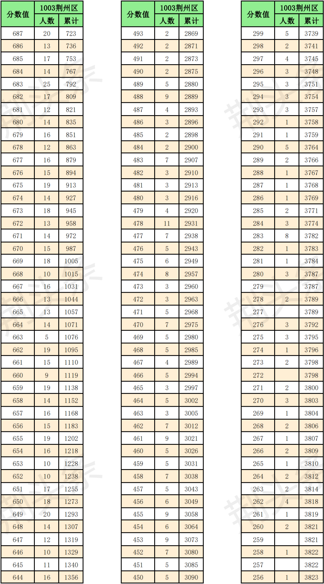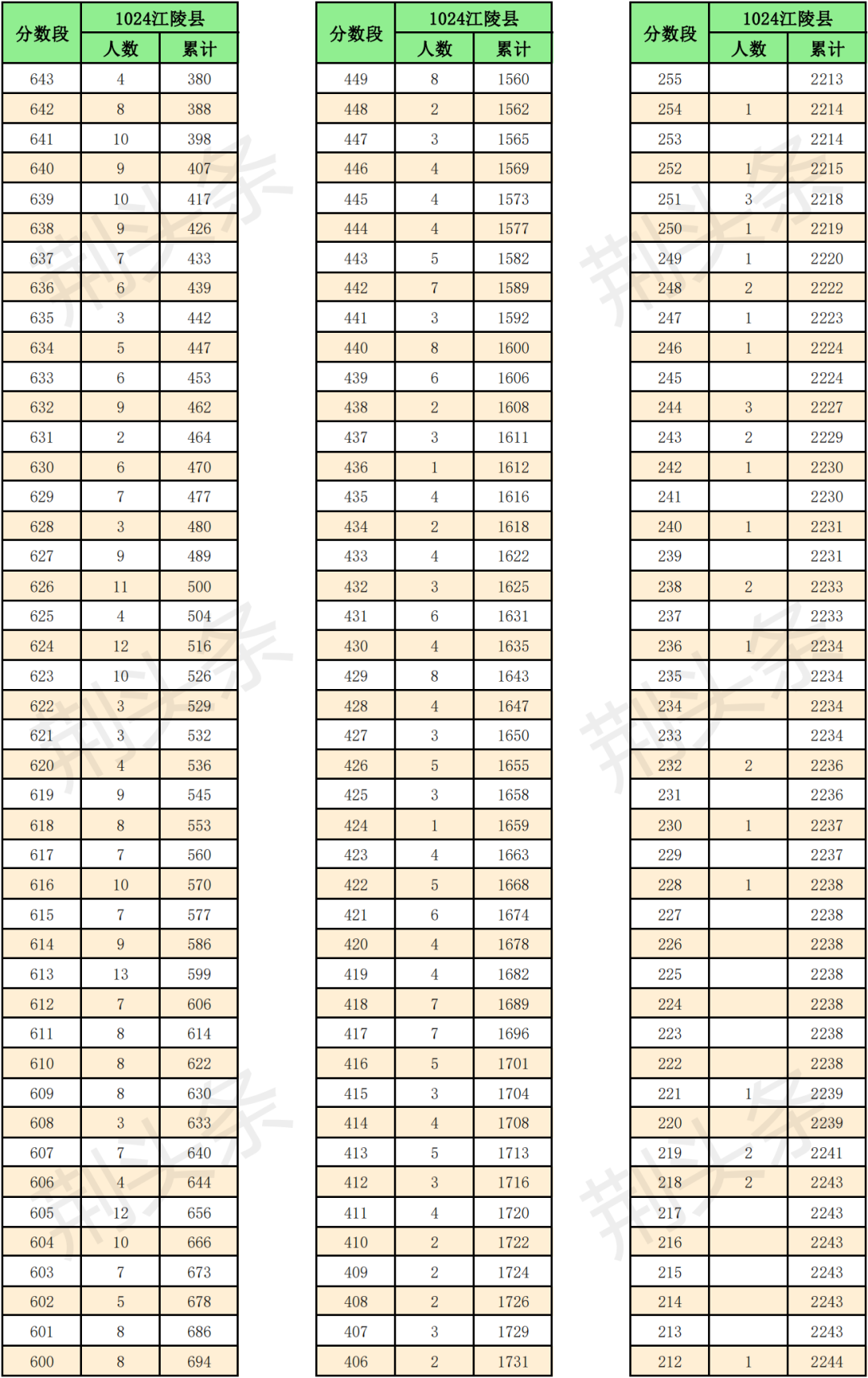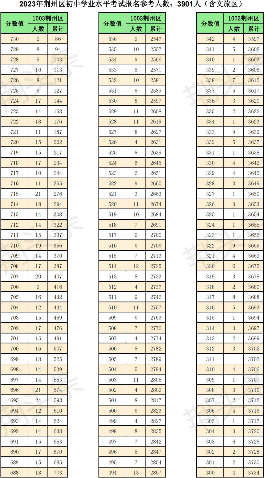 荆州市2023年初中学业水平考试一分一段表具体内容如下(点击↓图片查看大图)