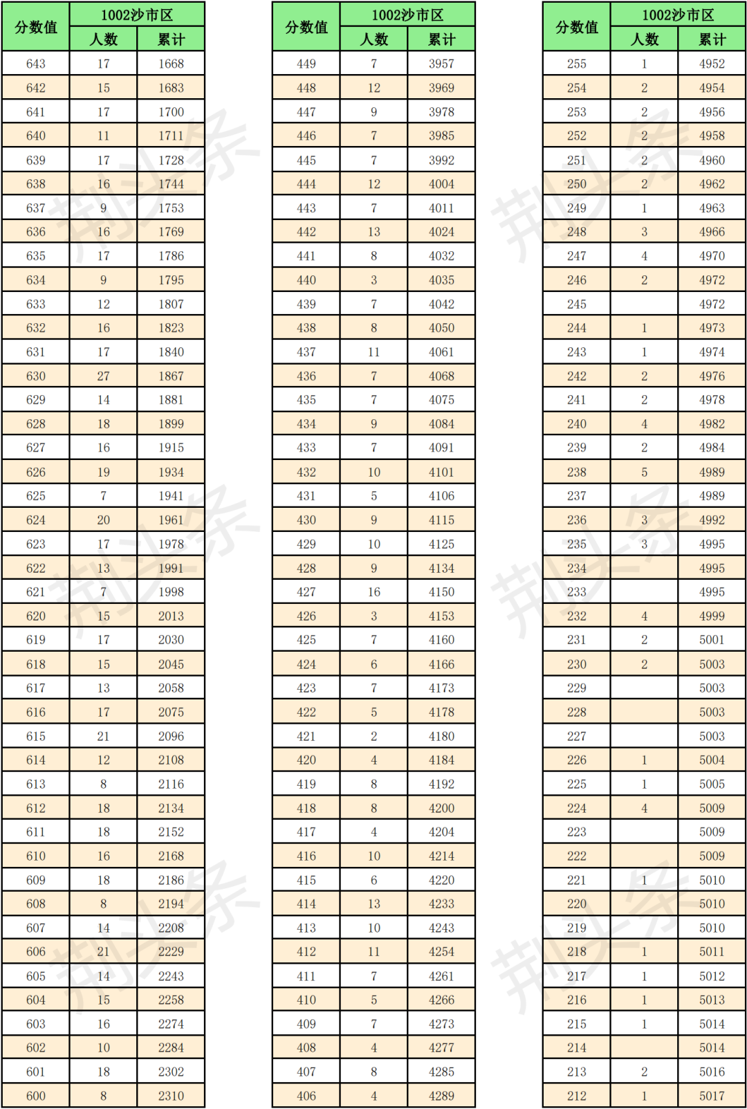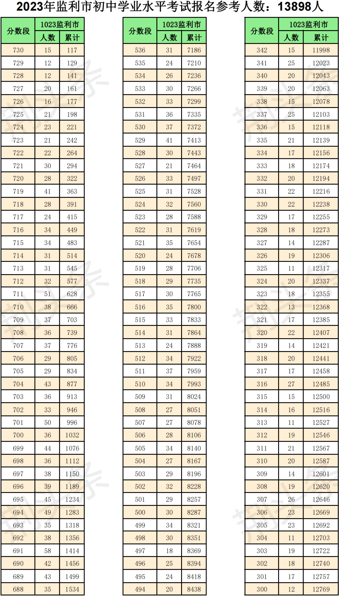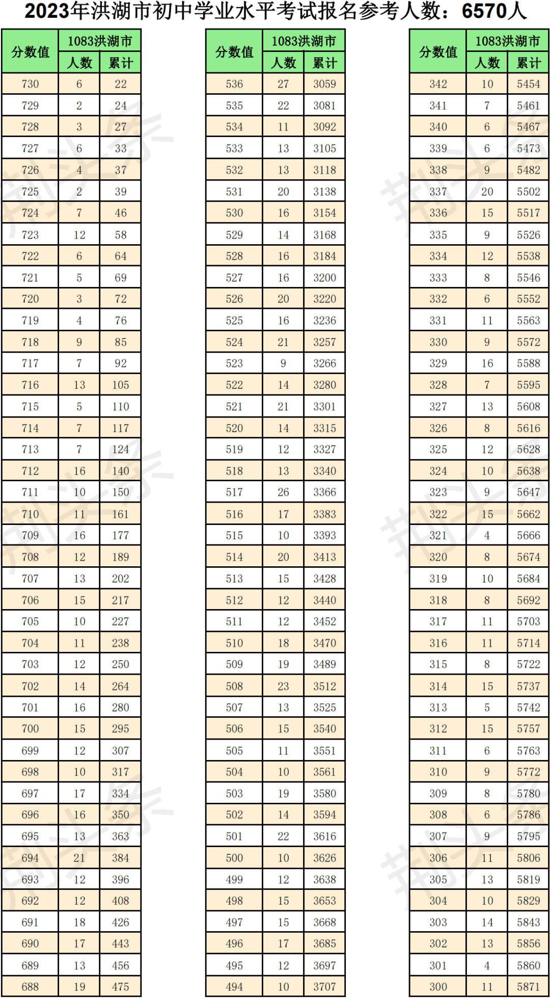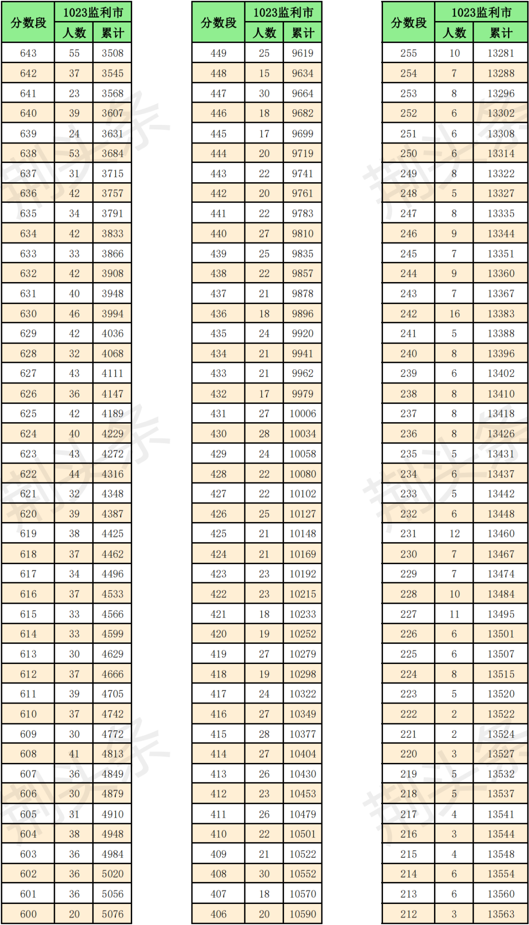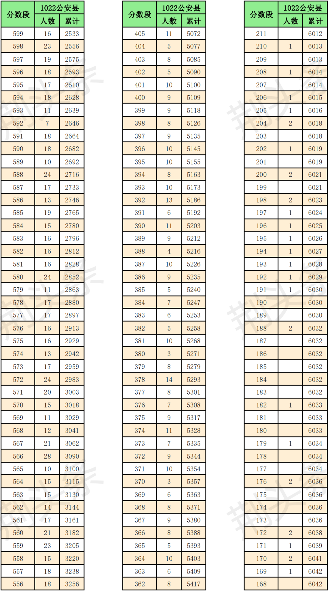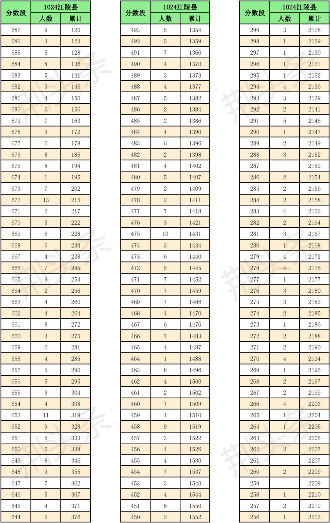 荆州市2023年初中学业水平考试一分一段表具体内容如下(点击↓图片查看大图)