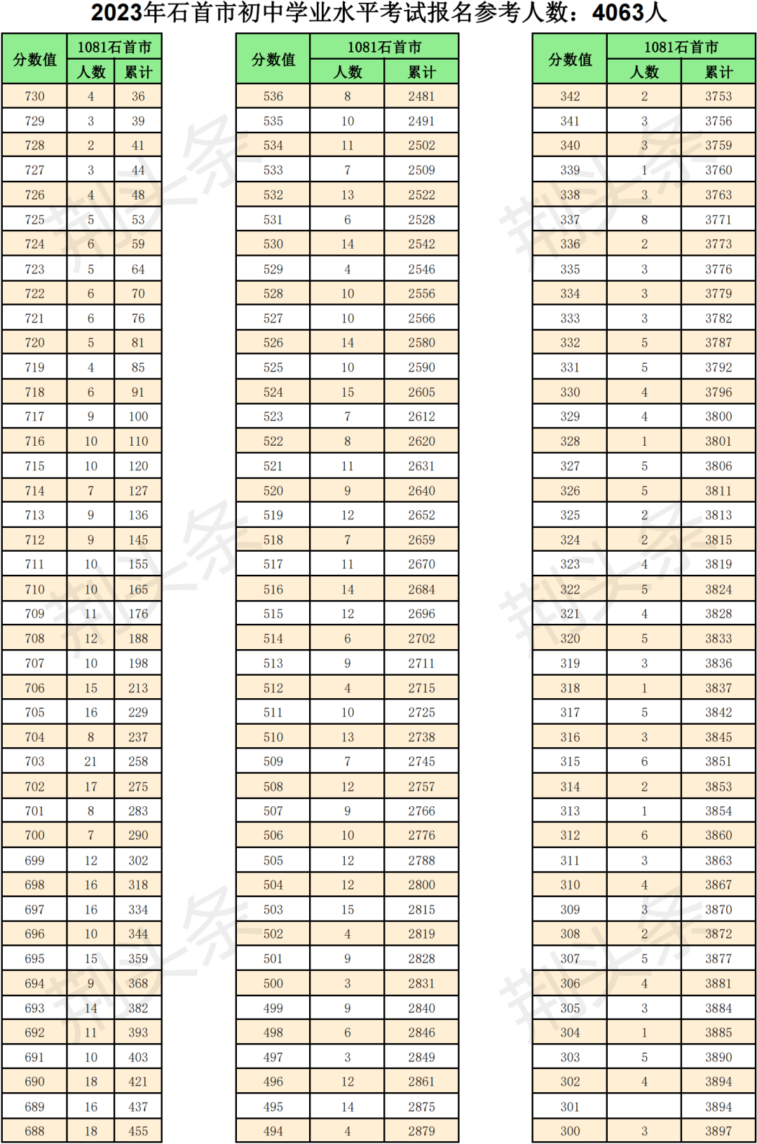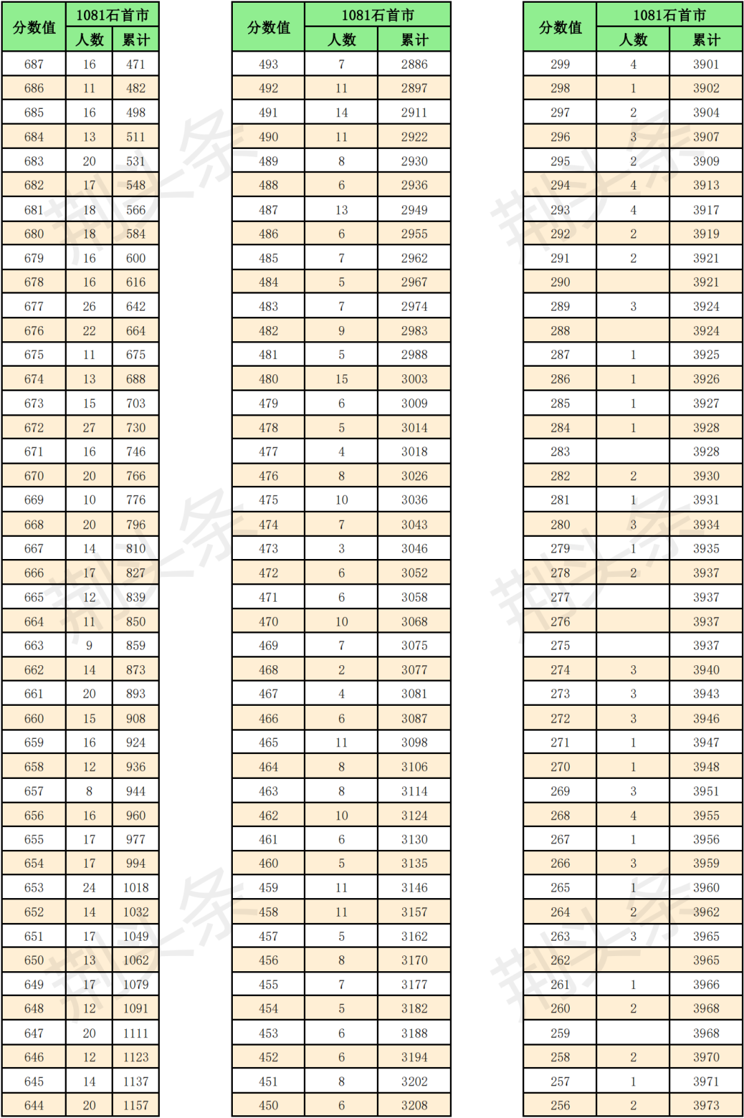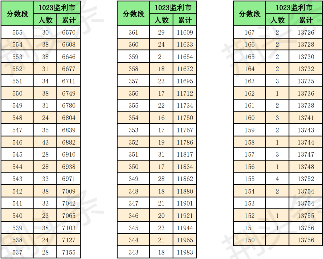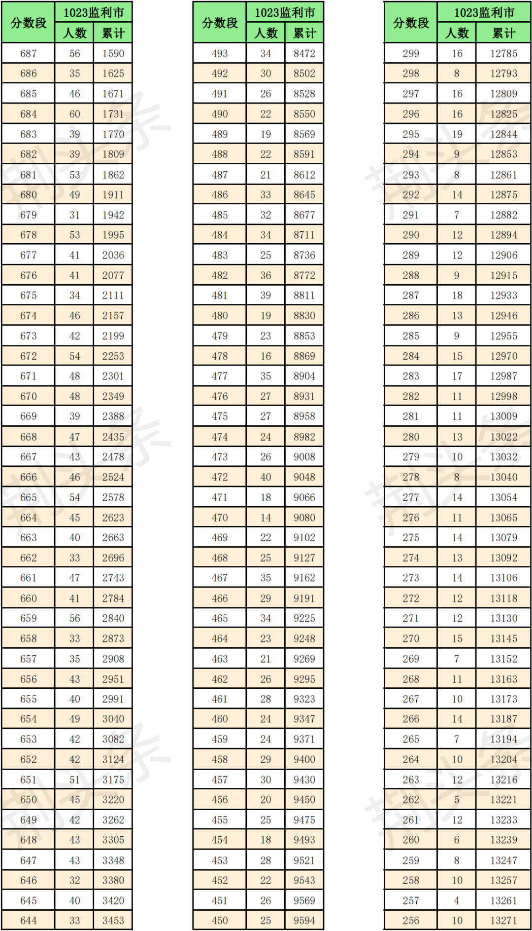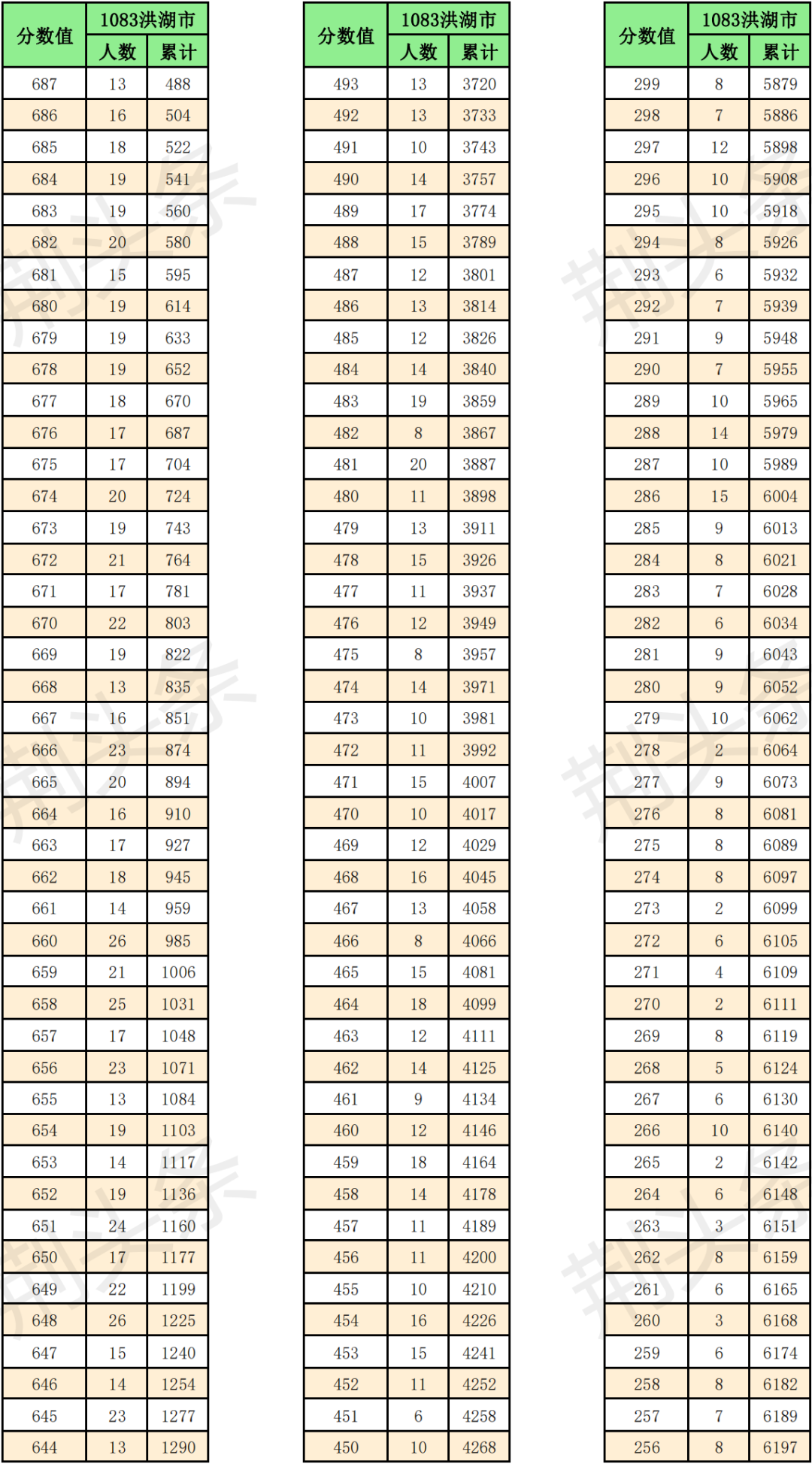荆州市2023年初中学业水平考试一分一段表具体内容如下(点击↓图片查看大图)