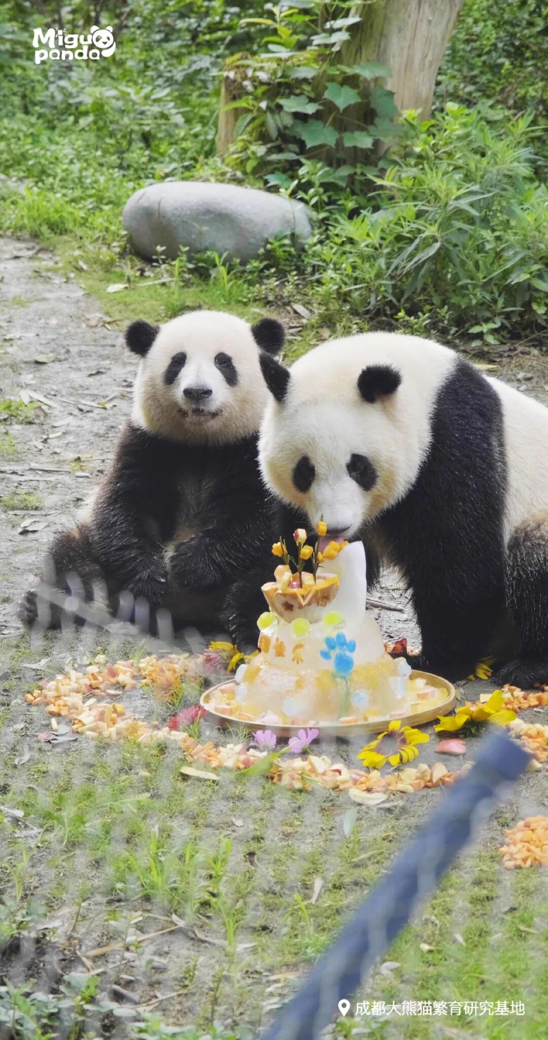今天也是萌兰同父异母的双胞胎弟弟妹妹花花、和叶的生日。成都大熊猫繁育基地,同样为两只小熊办起了生日会。坐拥百万粉丝的“顶流女明星”大熊猫花花的大名叫做“和花”,三角饭团的身形和温顺的性格圈粉无数。