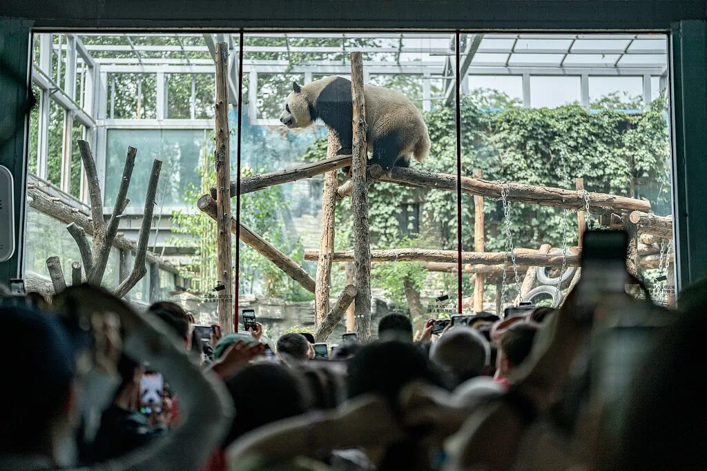2023年5月25日,北京动物园,大熊猫萌兰展馆外人头攒动。视觉中国 资料图