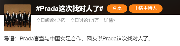 随后,多个相关话题空降微博热搜榜,引发网友热议。对此,有网友评论:Prada这次找对人了!“穿Prada的女足”中国女足已成体坛顶流面对艰难的小组出线形势,水庆霞与中国女足承受的压力,既有白纸黑字的竞技成绩,也源于四面八方的翘首期盼。但从积极的方面看,如此破圈级别的关注,已经在特殊时期化为真金白银的赞助,让中国女足在中国体育的低谷期逆风前行。据澎湃新闻,最近两三个月,中国女足收获了多个独家赞助,商业价值水涨船高。