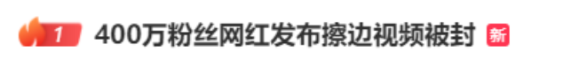 今天上午,一则“400万粉丝网红发布擦边视频被封”的消息冲上微博热搜第一,引发网友关注。