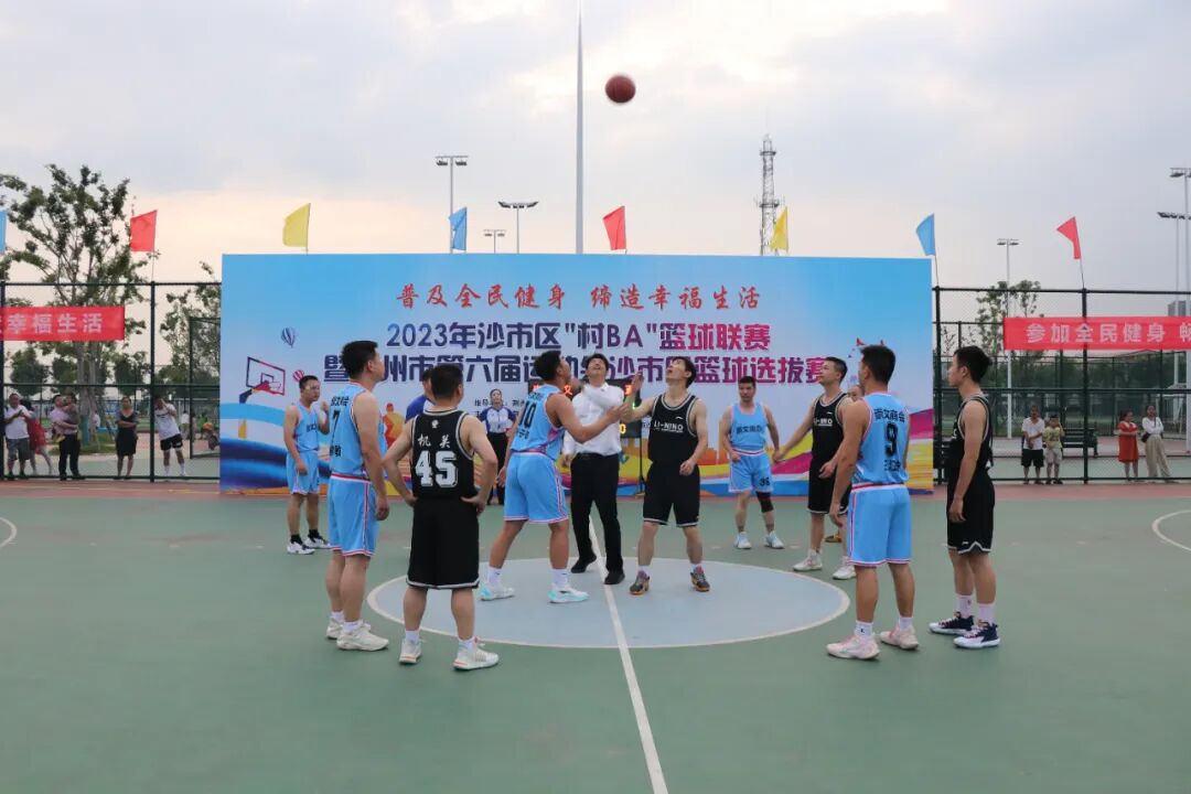 秦军宣布篮球比赛开幕,并为2023沙市区“村BA”篮球联赛街道组揭幕战开球。