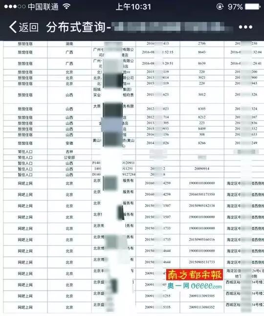 日前,南都记者以了解亲戚结婚对象为由,联系上一家名叫“商贸”的服务商,工作人员介绍,只需提供身份证号码,即可查询包括开房记录、列车记录、航班记录、网吧记录、出境记录、入境记录、犯罪记录、住房记录、租房记录、银行记录、驾驶证记录等11个项目在内的材料,统称“身份证大轨迹”。这一“全套服务”,收费仅850元。如果针对性地查询单个项目,则收费另计。