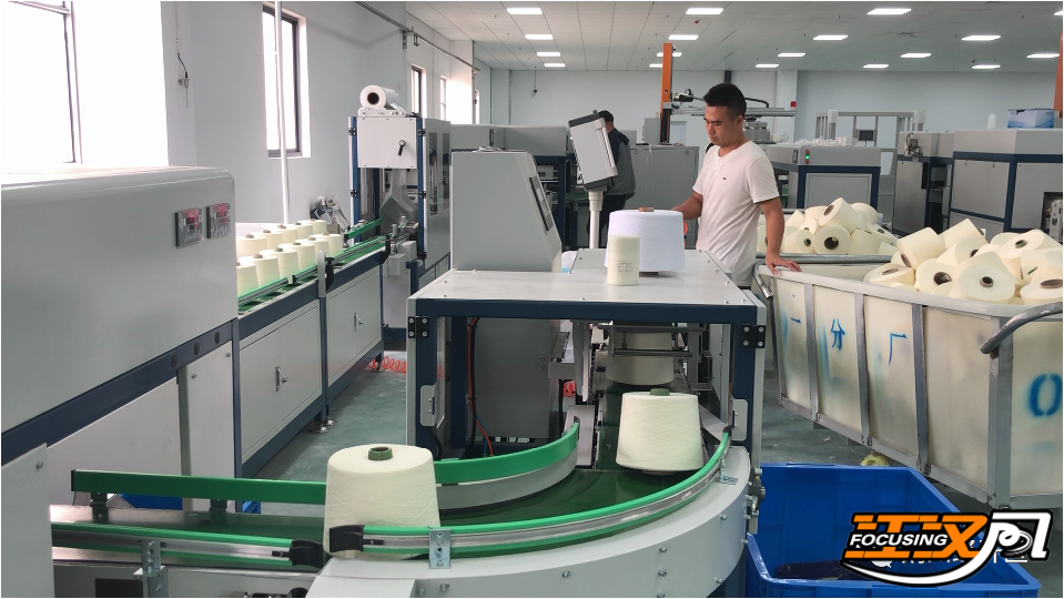 与印象中的传统纺织车间截然不同,里面凉爽透气,穿着灰白色长袖工装的师傅,脸上并未有一滴汗珠,高速旋转的络筒机周边,也不见一根飘飞的丝线碎绒,干净整洁。“这是25度恒温车间。”张致龙指着房顶,又指着地板:“房顶上装有中央空调,地板下是大型吸尘器,形成了一个空气循环系统,让机械和人在最舒适的状态下工作,保障良品率。”