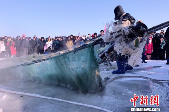 图为五大连池冬捕活动现场