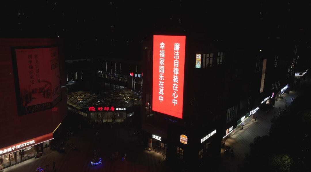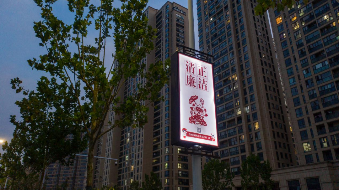 一条条清廉宣传标语在中心城区主要建筑上滚动播放,炫彩夺目,引得行人驻足观看,一抬头心里便留下了一幅画。从塔桥路往东,清风一条街的廉政路灯亦是五彩斑斓,一路清风一路廉,让群众在美轮美奂的视觉盛宴中深刻感受到“廉”“礼”“善”文化内涵,营造风清气正、向善向好的社会风尚。