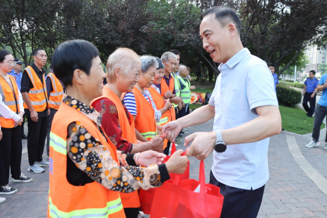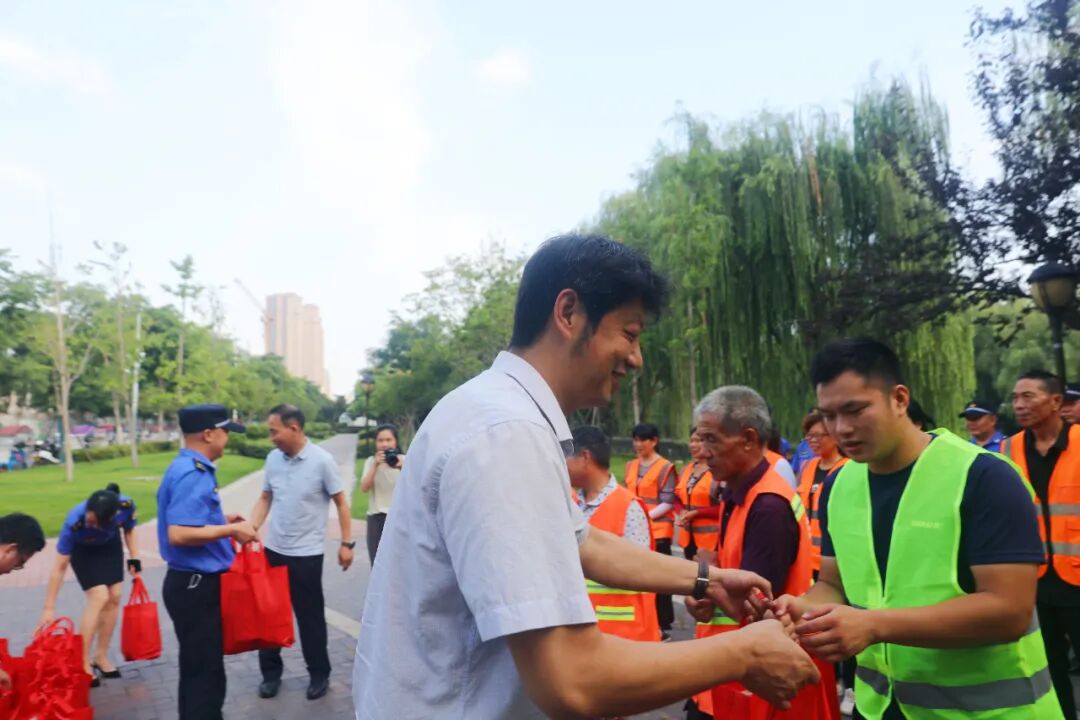 “大家辛苦了!”黄勇、秦军一行来到了西干渠路游园,亲切慰问奋战在高温一线的环卫工人、园林绿化工人和城管队员,感谢他们长期以来为维护城市环境美好付出的辛勤汗水,对他们不畏酷暑、爱岗敬业的精神表示赞扬,并送上防暑降温慰问品。