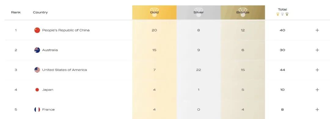 当地时间7月30日,2023年世界游泳锦标赛在日本福冈落下帷幕,中国队共获得20金8银12铜,名列金牌榜第一、奖牌榜第二。