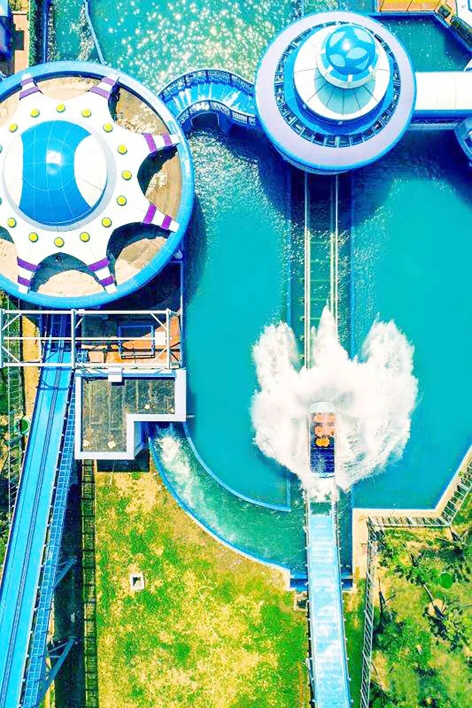 园内一期以海洋风情、加勒比风情元素为主题,建有5个主题片区、安装有13项高端硬件游乐设备,其中,超级造浪池、冲天回旋、大喇叭、巨兽碗、竞速滑道等都是时下全球最流行、最先进的水上游乐设施,让你冲浪戏水、消暑纳凉两不误,尽情嗨玩。