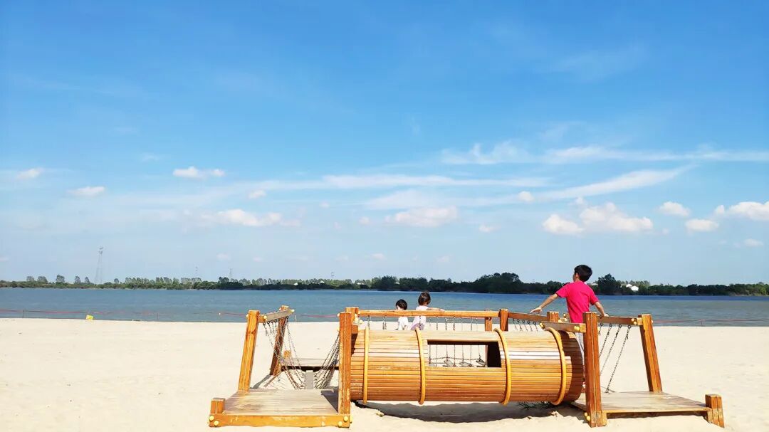 在荆州,想吹吹凉爽的自然风,除了江边,最妙的去处就是荆州园博园,这里不仅有碧波浩渺的湖景风光,还拥有荆州最大的人造沙滩。