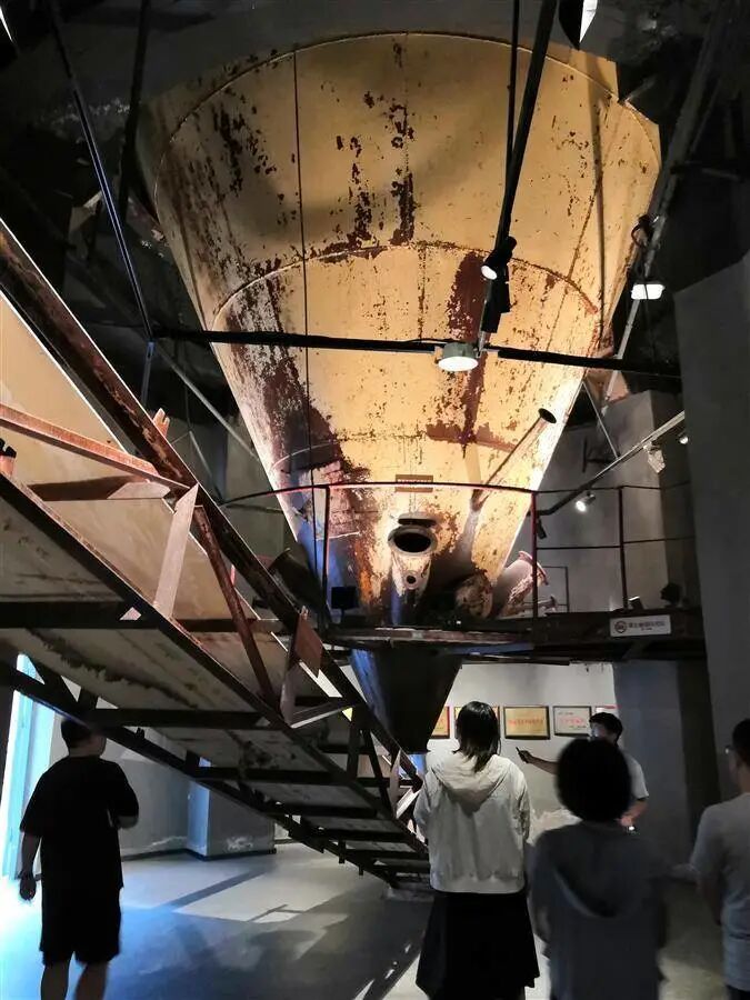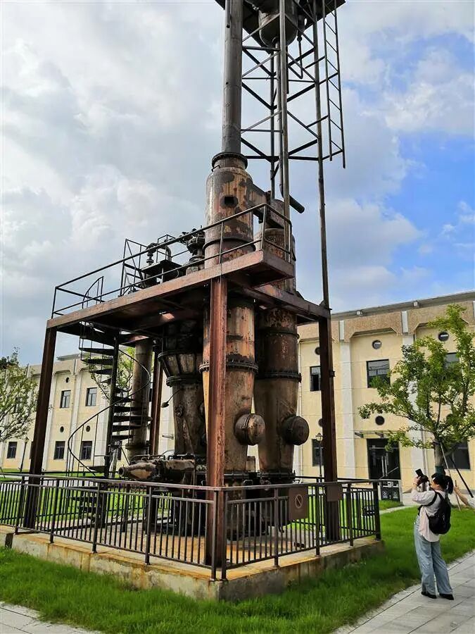 “活力28”老厂区,是夜游洋码头的必到之处。曾经的办公楼、小游园、生产车间等10多幢老建筑保存完好,高大的铁罐、烟囱等设备,被改造为一处处工业雕塑。原来的合成车间,就地建成“江汉明珠——沙市工业成就展览馆”,每天游客络绎不绝。