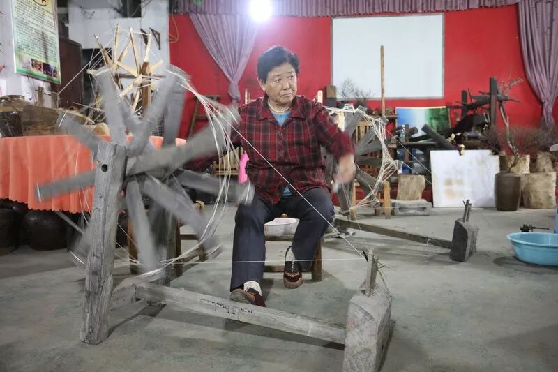 今年76岁的杨振玉就是慕名而来的参观者之一,她告诉小编没想到在有生之年还能再次摸到纺车,现在她有空就到覃园来纺线,回忆自己的青春岁月。