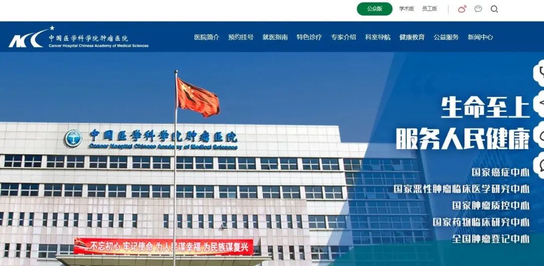2023年7月份中国医学科学院肿瘤医院官网还有“河北医院”字样。
