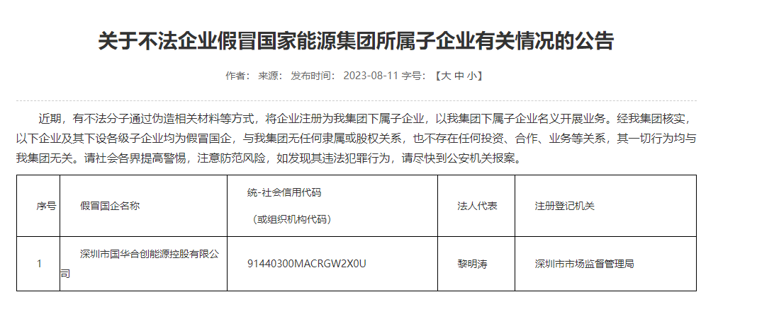 8月11日,国家能源集团发布《关于不法企业假冒国家能源集团所属子企业有关情况的公告》。原文如下:
