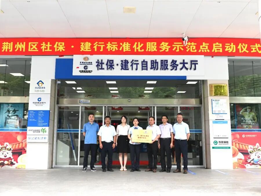 荆州市社保中心主任孔维君、建行荆州分行副行长孟双林、荆州区人社局主要负责人参加启动仪式,共同为荆州市首家“社银标准化”民生服务网点揭幕。