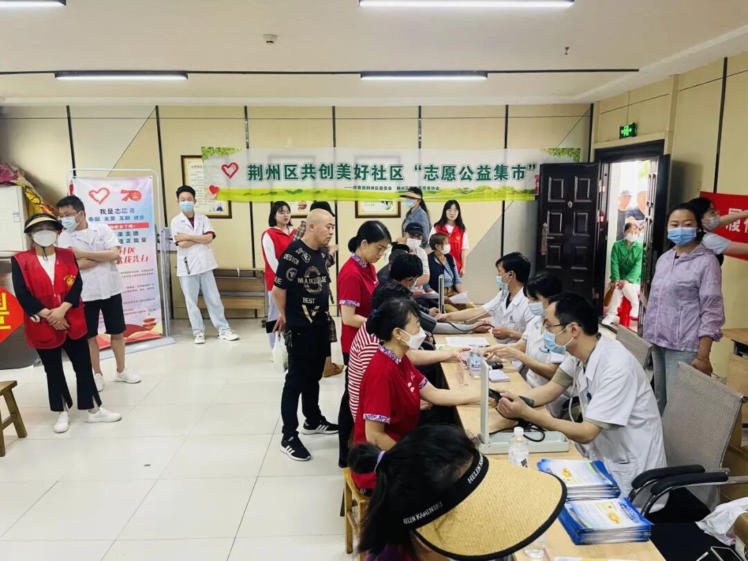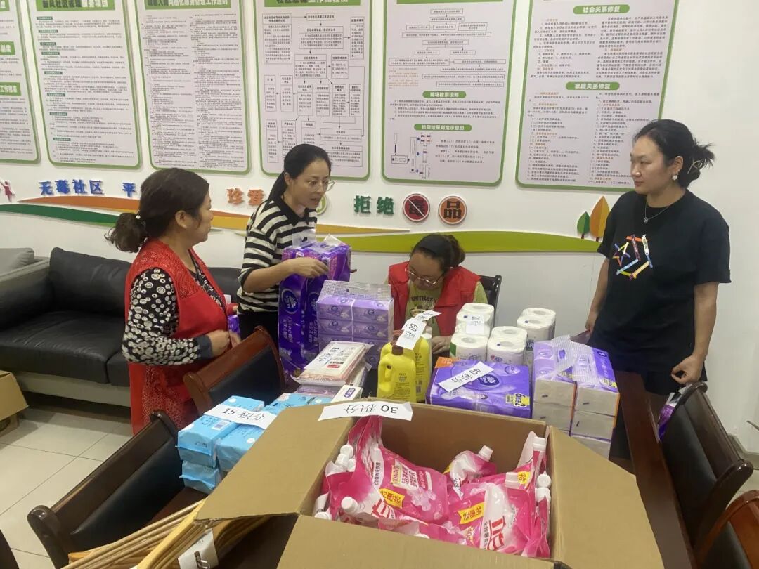社区活动室的桌子上摆放着收纳箱、卫生纸、洗衣液、洗手液、湿巾、洗洁精、衣架等十几种生活用品,每件物品10到100积分不等。志愿者们根据在荆州市智慧平台“云上荆州”开展志愿服务累积积分的多少,自由挑选与积分相对应的商品。