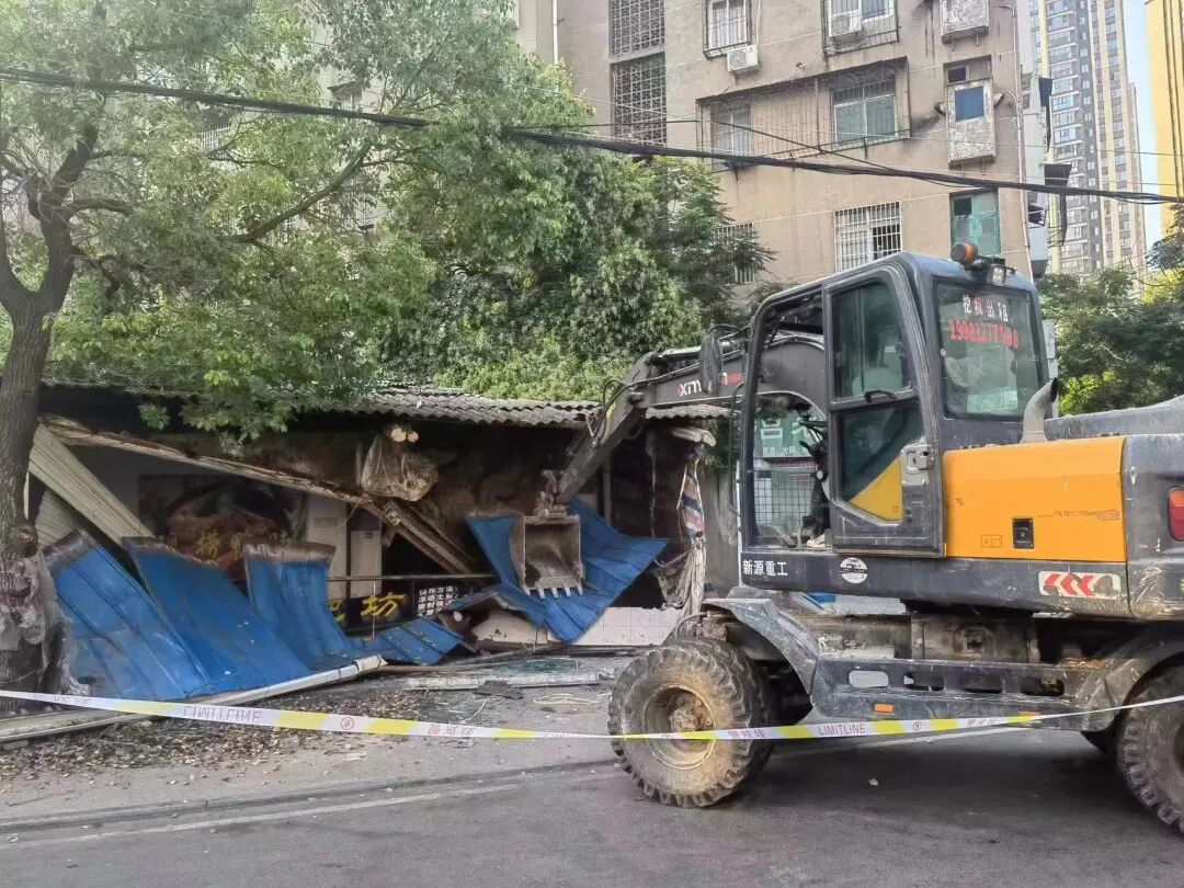 8月11日清晨,解放街道、社区专班人员、城管执法部门联合行动,拆除四北通道违建门面54间,居民出行道路被彻底打通,引得警戒线外的居民拍手叫好。