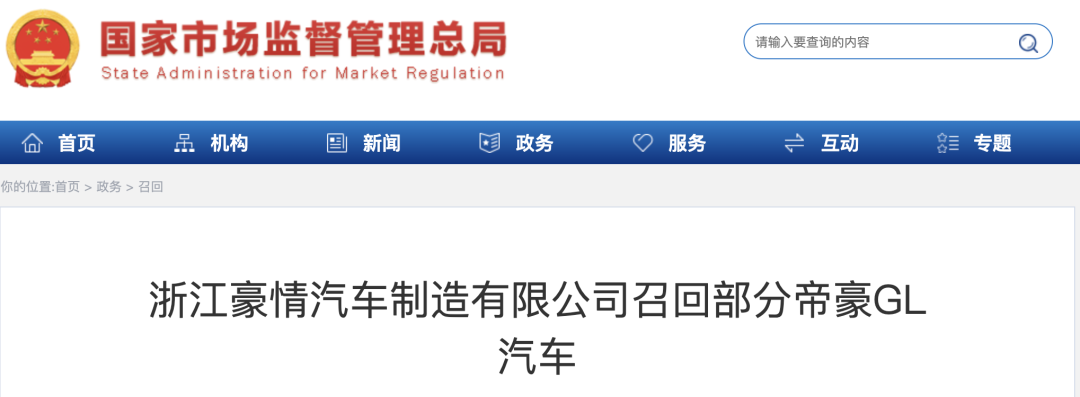 日前,浙江豪情汽车制造有限公司根据《缺陷汽车产品召回管理条例》和《缺陷汽车产品召回管理条例实施办法》的要求,向国家市场监督管理总局备案了召回计划。决定自即日起,召回2016年7月1日至2018年12月31日生产的部分帝豪GL汽车,共计22272辆。