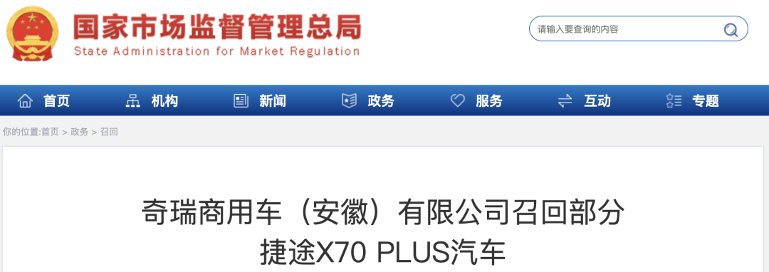 日前,奇瑞商用车(安徽)有限公司按照《缺陷汽车产品召回管理条例》和《缺陷汽车产品召回管理条例实施办法》的要求,向国家市场监督管理总局备案了召回计划,决定自2023年8月20日起,召回2021年6月1日至2022年2月11日期间生产的部分捷途X70 PLUS汽车,共计33077辆。