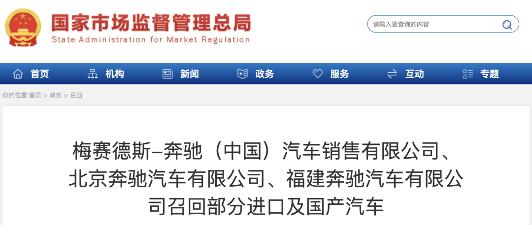日前,梅赛德斯-奔驰(中国)汽车销售有限公司、北京奔驰汽车有限公司、福建奔驰汽车有限公司根据《缺陷汽车产品召回管理条例》和《缺陷汽车产品召回管理条例实施办法》的要求,向国家市场监督管理总局备案了召回计划。