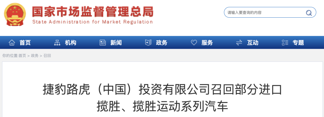 日前,捷豹路虎(中国)投资有限公司根据《缺陷汽车产品召回管理条例》和《缺陷汽车产品召回管理条例实施办法》的要求,向国家市场监督管理总局备案了召回计划。自即日起,召回2023年1月20日至2023年5月30日生产的部分进口2023款揽胜、揽胜运动汽车,共计574辆。