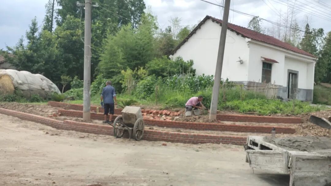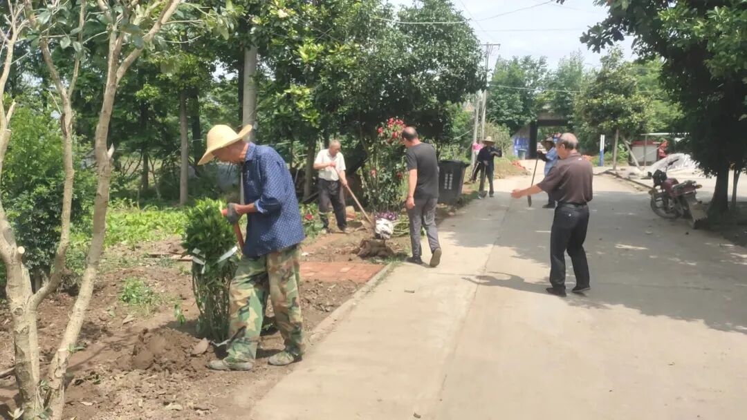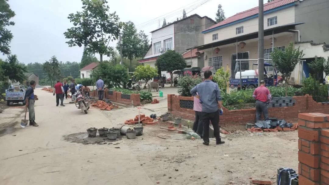 村级发展顾问蔡银国积极带头,发动能工巧匠参与砌小围墙、种树、铺砖、粉刷墙面等人居环境整治工作。目前一组道路两边栽植了紫薇、桂花、玫瑰花等各类花卉,居民点门口修建了全长1430米的花式围墙,文体广场基本建成,村民们正在完善相关附属设施。