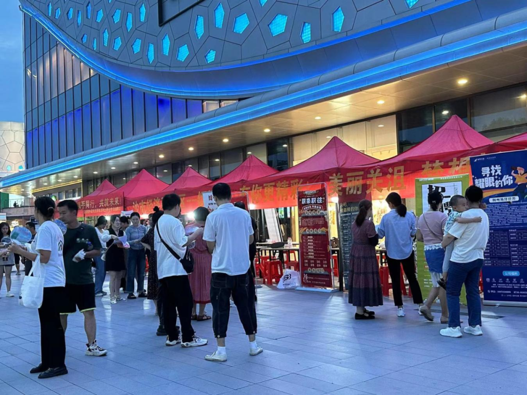 服务促就业,筑梦赢未来。8月25日晚,吾悦广场人头攒动,酷暑带来的热气还没消散,近百个摊位便迫不及待地搭了起来,这是今年沙市区就业服务攻坚行动暨服务民营企业夜市招聘会第14站的活动现场。