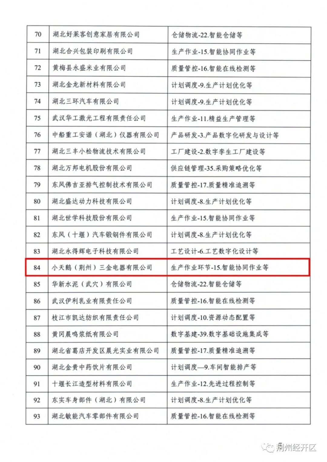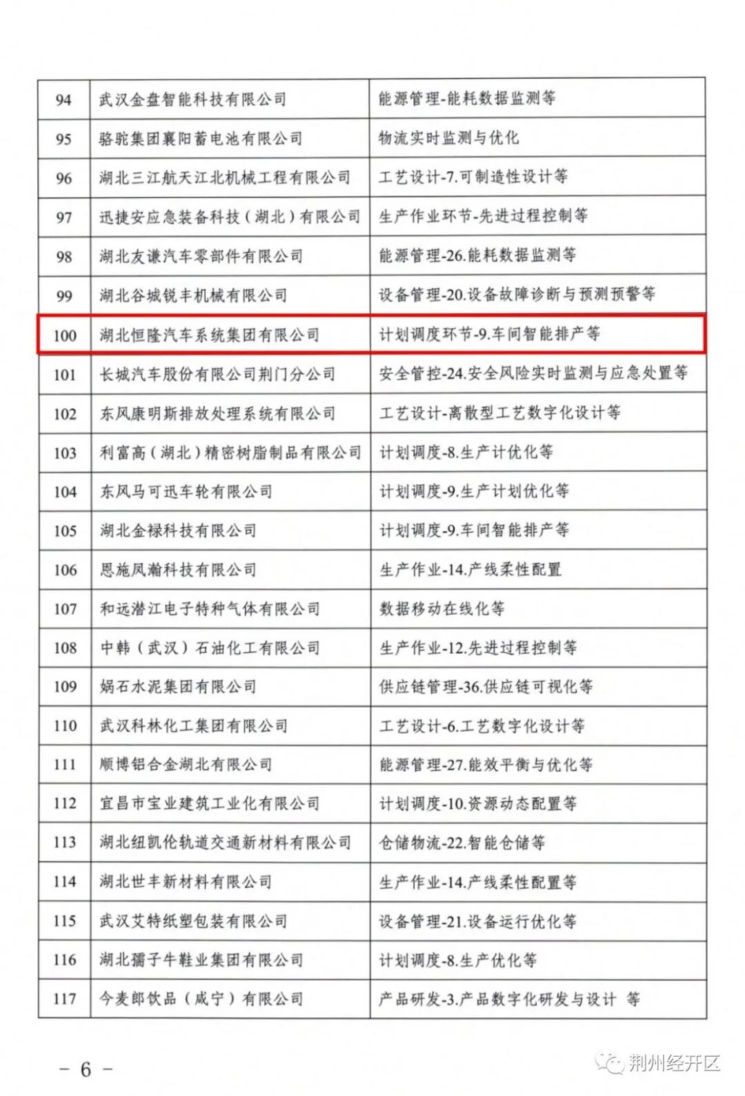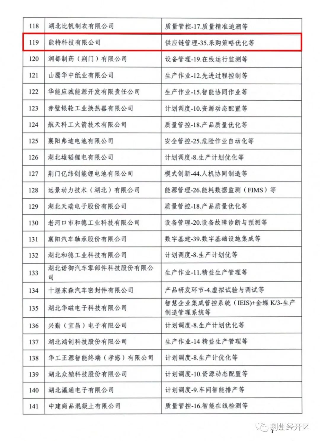 近日,湖北省经济和信息化厅正式公布2023年度湖北省智制造试点示范企业名单,荆州经开区7家企业上榜(详情见名单)。