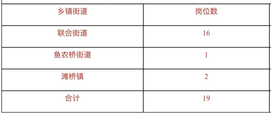 荆州经开区所辖联合街道、鱼农桥街道、滩桥镇辖区内的专职社区工作人员19人。(具体详见附件《荆州经开区社区工作者招聘岗位表》)