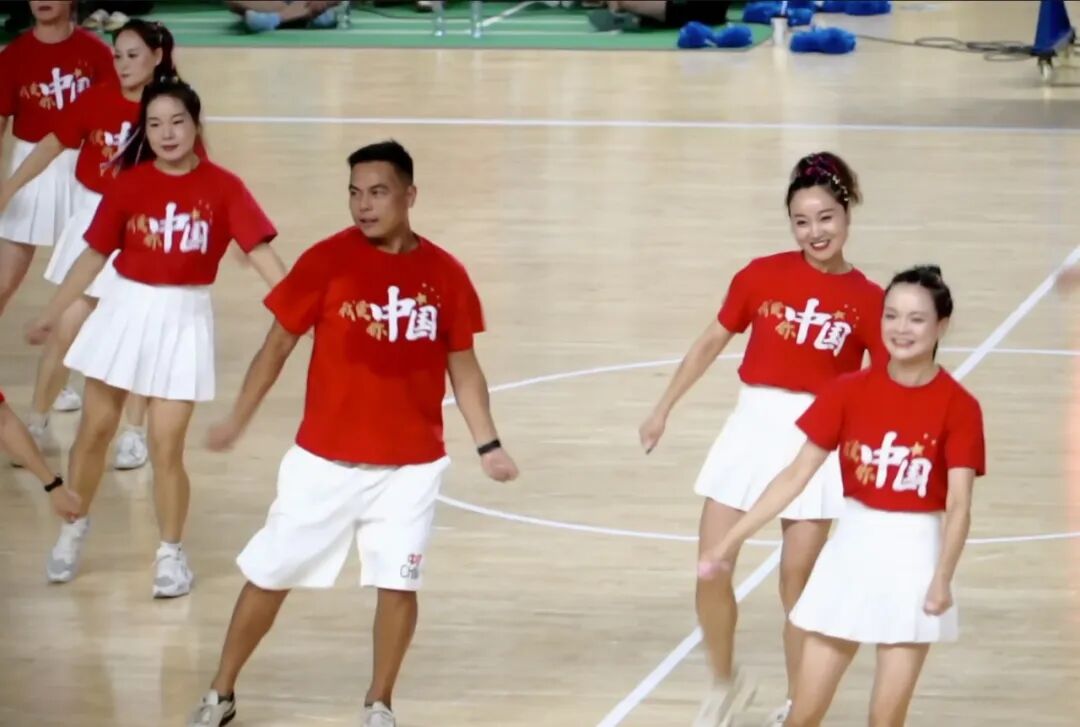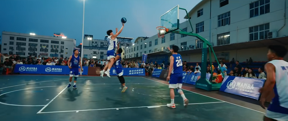 火热的篮球赛场上,各参赛队员们精神抖擞,斗志昂扬,配合默契,挥汗如雨拼抢,娴熟的运球、华丽的转身、精彩的扣篮,动作如行云流水。