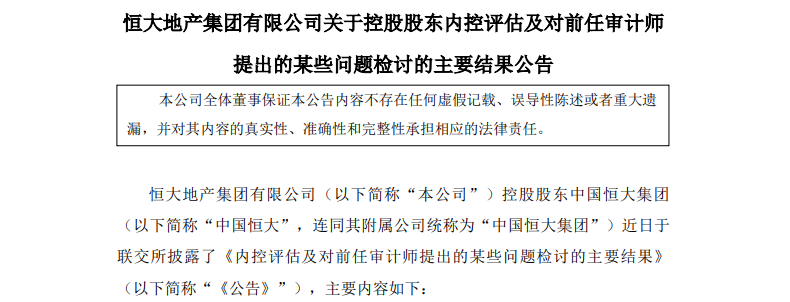 8月24日,中国恒大发布的《内控评估及对前任审计师提出的某些问题检讨的主要结果》详细披露了恒大财富的情况。