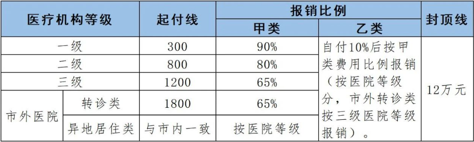 3.特困人员(含孤儿)、低保对象、返贫致贫人口:0.6~3万元报销65%;3~10万元报销70%;10万元以上报销80%,无封顶线。