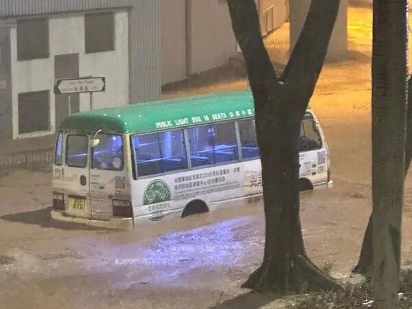 香港大埔区车辆涉水而行。图自香港星岛网