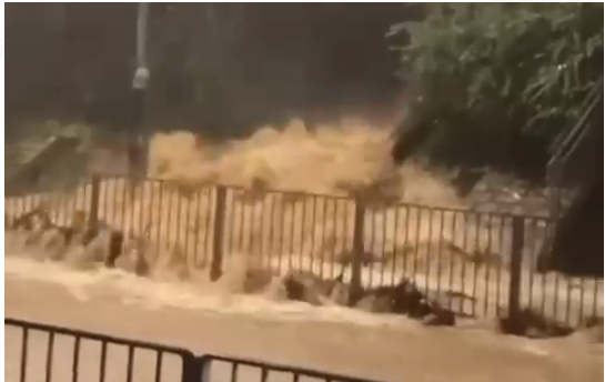 据网上流传视频所见,黄大仙站往沙田坳道的E出口雨水倒灌情况严重,黄泥水沿扶手电梯、楼梯涌入车站,扶手电梯已经损毁。