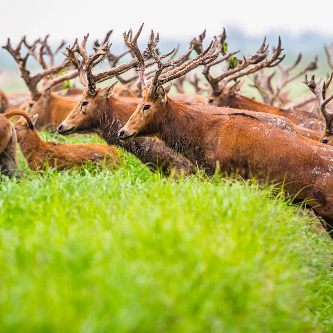 石首麋鹿国家级自然保护区位于长江与长江天鹅洲故道夹角处,这里气候温暖湿润,水草林木丰茂,植物种类繁多,是麋鹿栖息的理想家园。保护区管理处工程师杨涛介绍,去年夏天至今,保护区一直较为干旱,为保障麋鹿的正常生活,工作人员在泥泞区定时补水,满足麋鹿饮水、泥浴、解暑的需要;同时,对草地进行除杂,促进可食植物生长,并加强对禁区车辆、人员的管控。