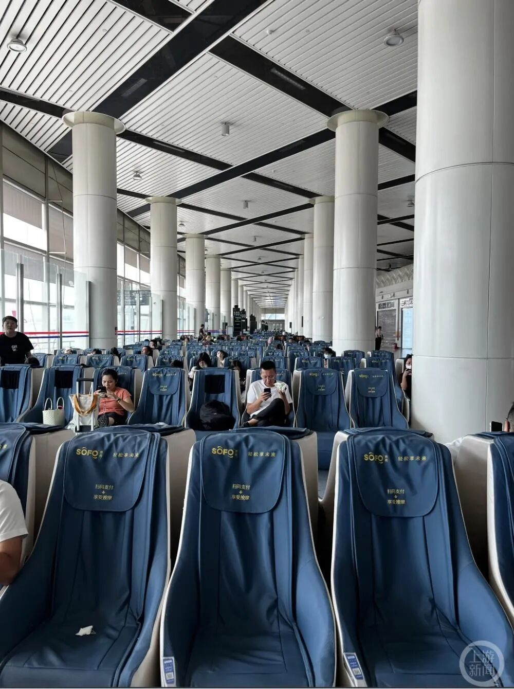 工作人员表示:“当时引进按摩椅主要是考虑到座椅上有免费充电接口,可以提升服务质量,而且还有延伸服务,如果旅客想按摩的话,扫码也可以按摩,当时是这么考虑的。现在收到旅客反映这个座椅坐得有点不舒服,但是合同还是在执行中,我们会想办法解决这个事,将在近期对座椅摆放做一些调整。”