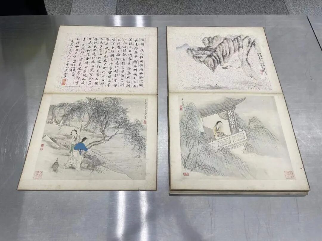 经广东省文物鉴定站鉴定,其中两件为清末颜秋坪题袁绩懋、左锡璇画山水仕女珠联合璧册和清末袁励准题左锡惠画山水仕女图,属于国家禁止出境的一般文物。目前,该案已移送海关后续处置部门处理。