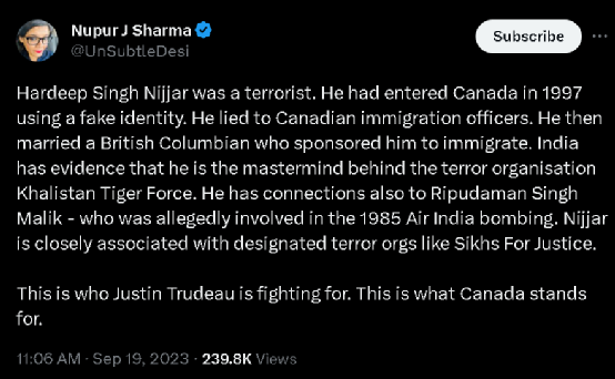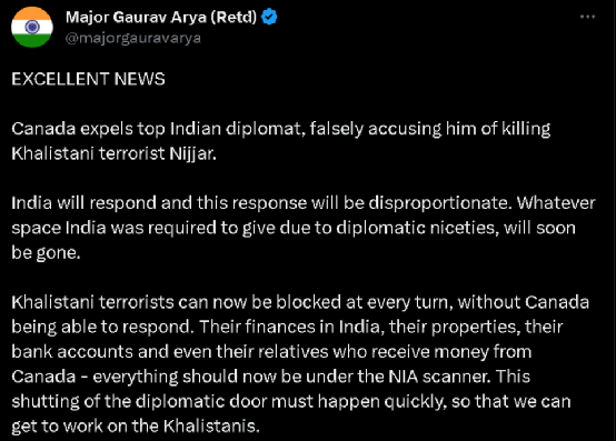 但魔幻的是,尽管不少加拿大人被这起事件所震惊,但不少印度网民却对此事表现出了一种又怒又喜的情感。