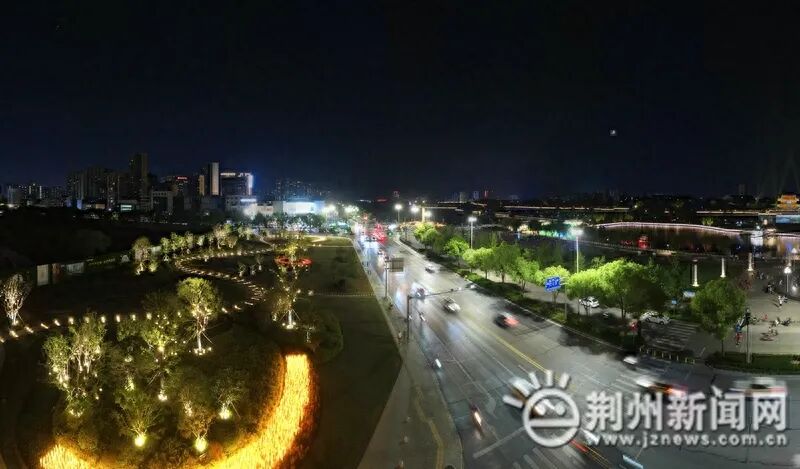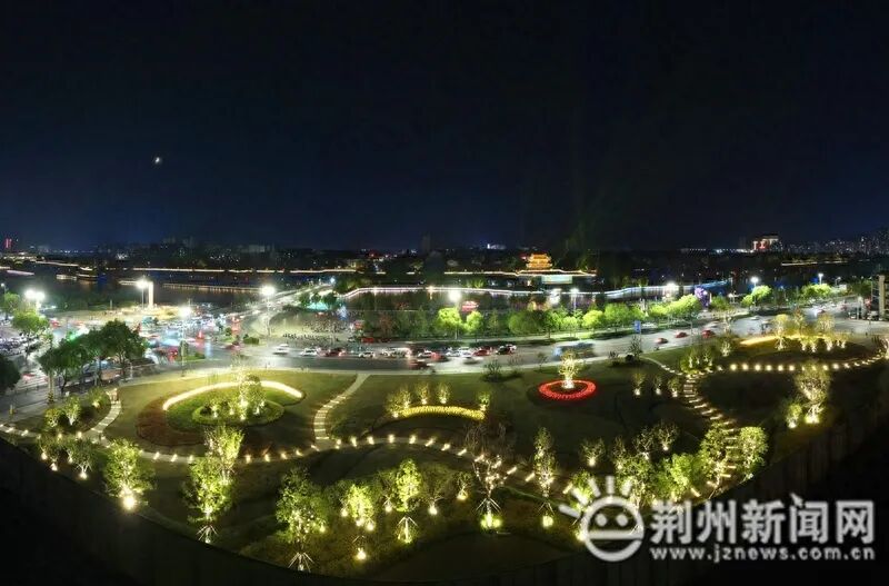 航拍镜头下,东门周边区域的夜色璀璨夺目、层次分明,东门宾阳楼、护城河、金凤广场、轴承厂公园的夜景连成一片,美不胜收。轴承厂公园亮化后,不仅为市民提供了更加优美、舒适的生活环境,还对提升城市形象起到了积极作用,进而带动荆州夜经济和旅游产业的发展。